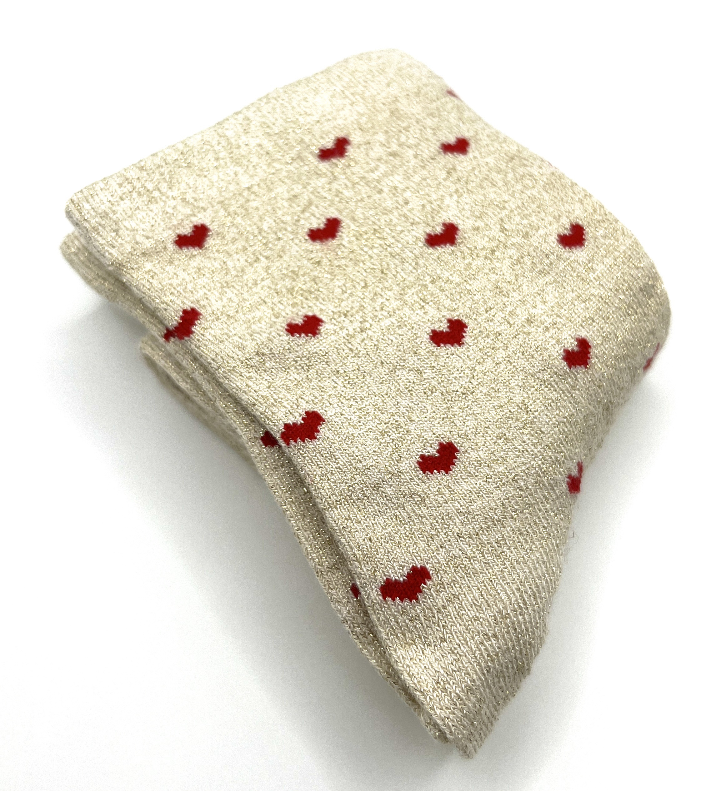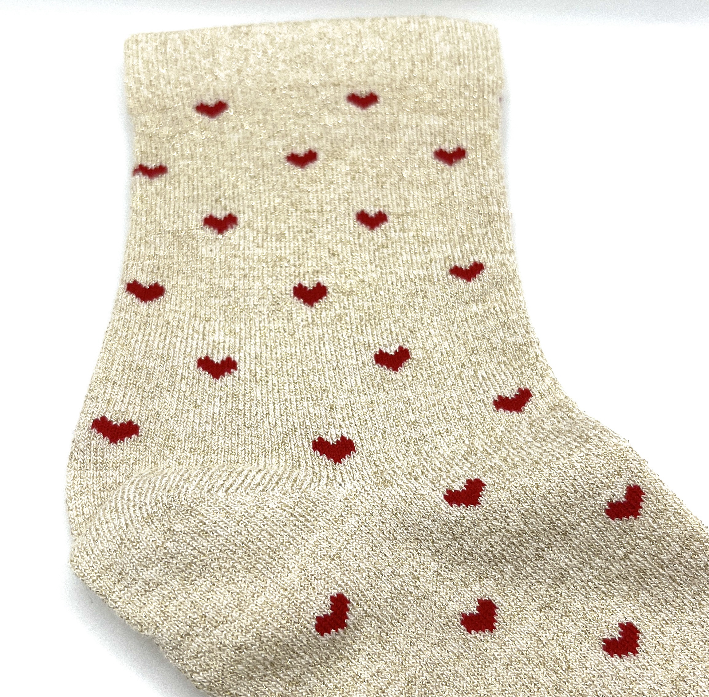 Chaussette beige paillettes petits cœurs