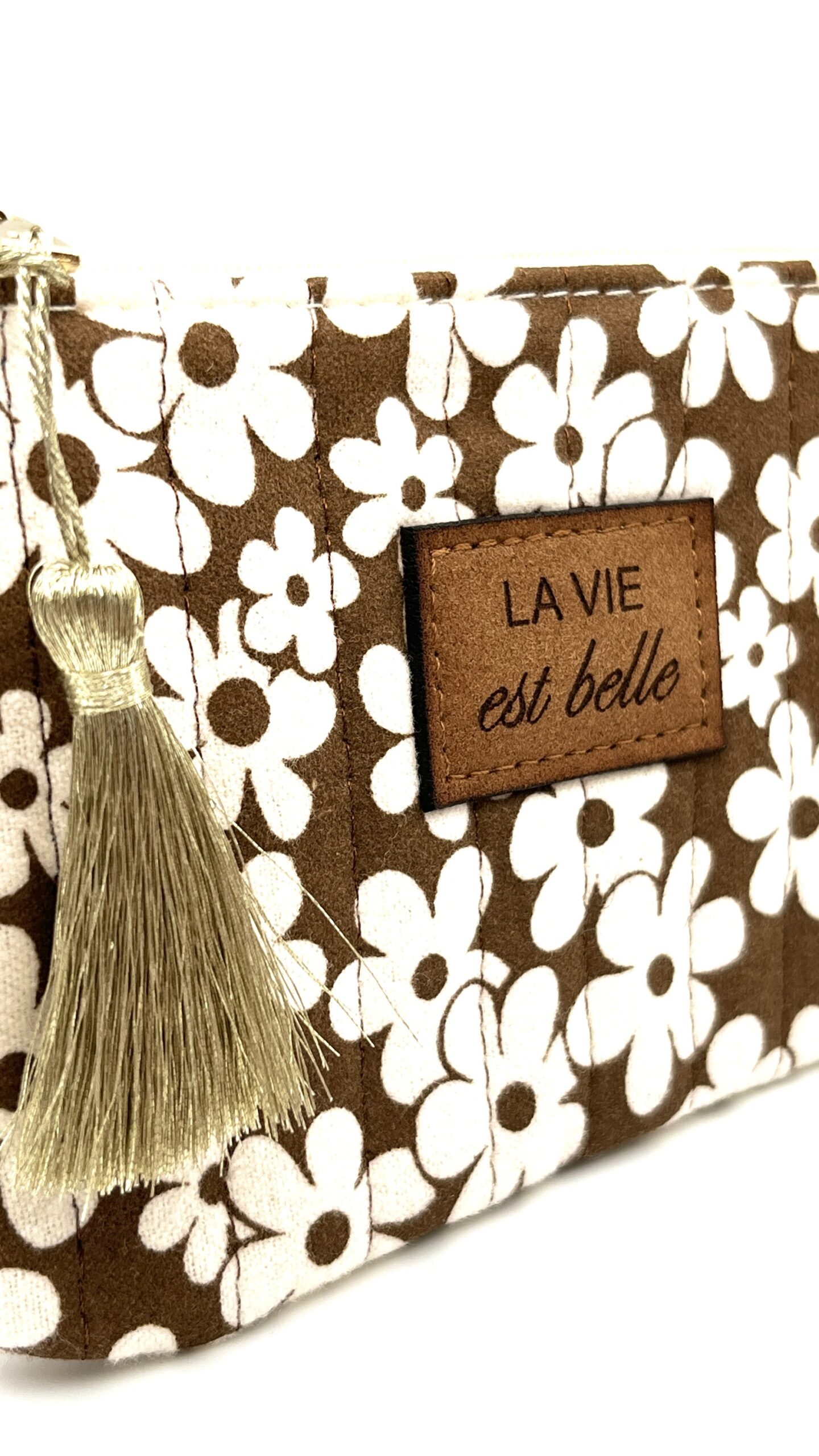 Pochette coton La vie est belle marron